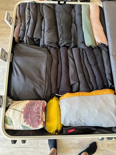 As for packing cubes, my approach depends on my luggage. In a suitcase, I prefer to pack without them, aside from a small cube for underwear and bras. Without cubes, I can maximize space and fit everything more efficiently. But in a backpack, I always use packing cubes. They help compress clothes, keep things from shifting, and make packing and unpacking much smoother when living out of a single bag.