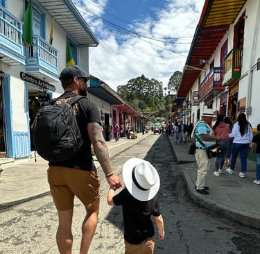 Next stop: Salento in the Coffee Triangle. If you're into coffee, hiking, or both, this region is an absolute must. Colombia is famous for its coffee, and Salento is right in the heart of it. Surrounded by lush green hills and mountains, it’s a hiker’s paradise.
