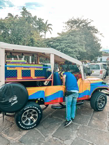 Although many pueblos claim to be the town from Encanto, Barichara is truly the one that inspired the village in Disney’s Encanto, and after spending time there, I can see why. It feels like a movie set, with its red-tiled roofs, cobblestone streets, and whitewashed buildings set against a stunning backdrop. After getting settled, we headed into the town square, where we found a local guide offering Jeep tours of the town. We hopped in, not knowing what to expect, but it turned into one of the most memorable experiences of our trip.