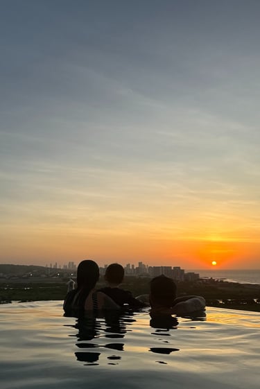 Finally, we made our way to Cartagena, our last stop. We took a quick break in Barranquilla for lunch before arriving in Cartagena, where we spent two amazing weeks. Our condo had a rooftop pool and bar, where we spent hours each day, and it’s actually where our son learned to swim.