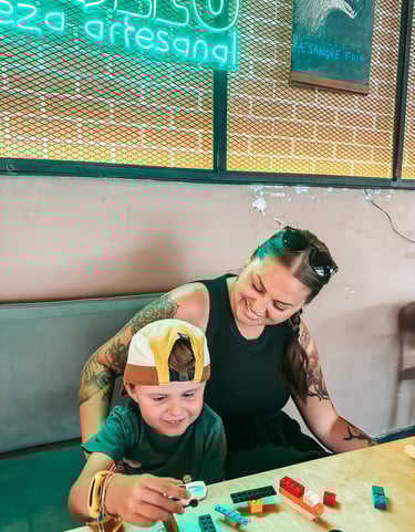 → Our favorite screen free dinner hack - Lego's in a pencil pouch. Bonus tip: always include wheels and axles. We swap out a handful every few weeks to keep it fun.